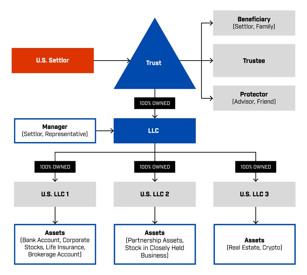 - The settlor retains control and authority over the investments in the trust, as an “investment advisor” and may veto decisions made by the person responsible for managing its assets, known as the trustee.